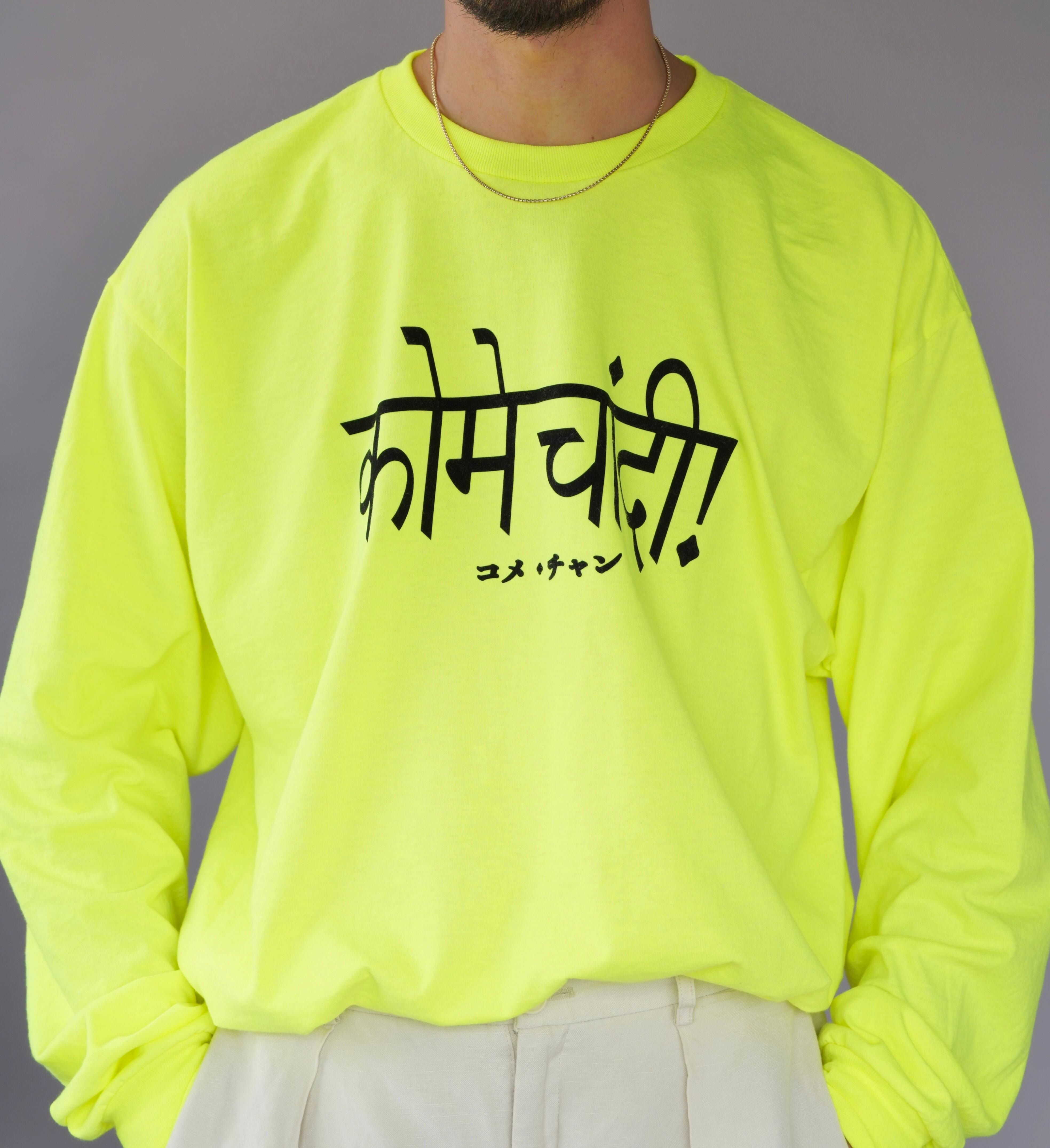 Comé Chan! ロンT 〈蛍光イエロー×ブラック〉