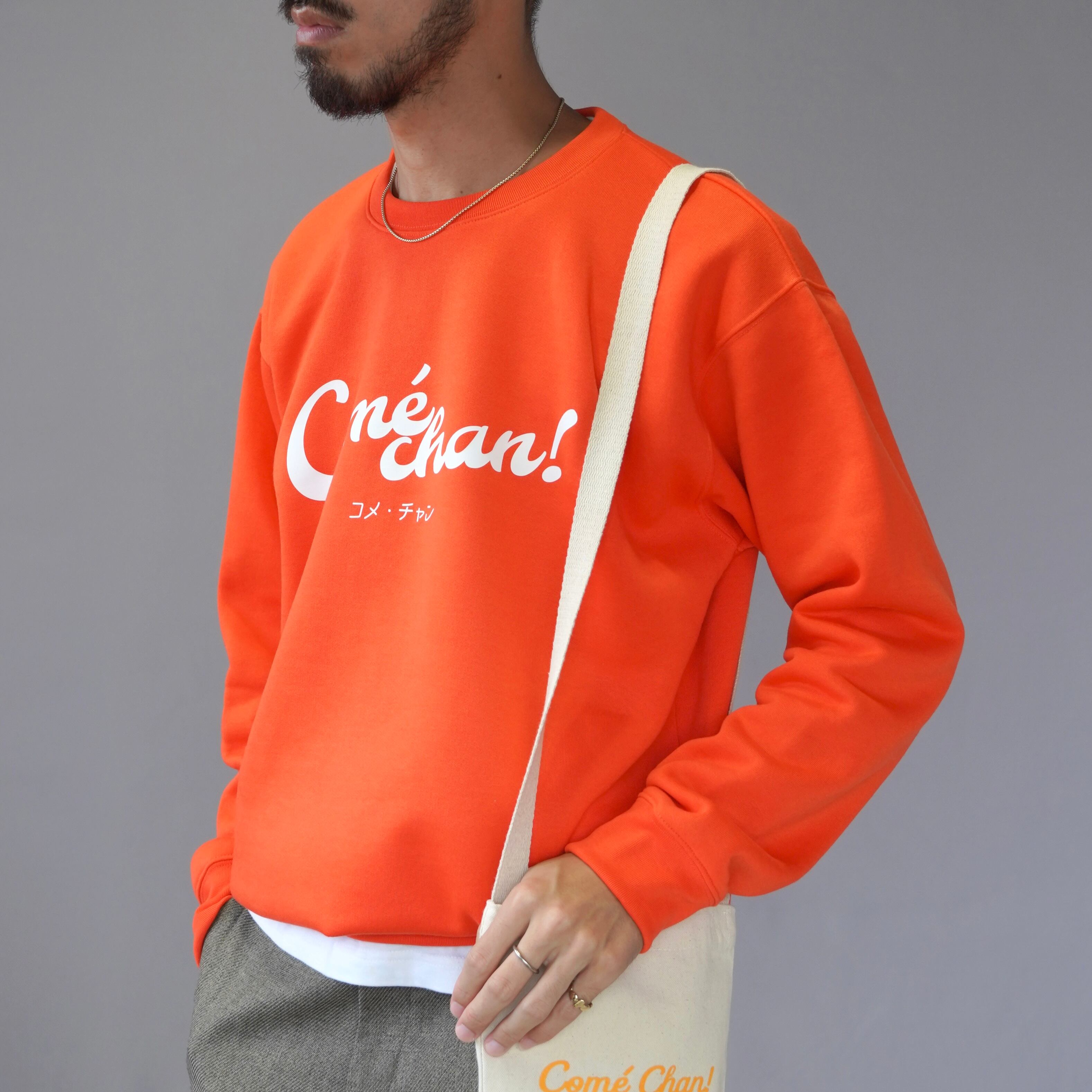 Comé Chan! スウェット 〈オレンジ×ホワイト〉