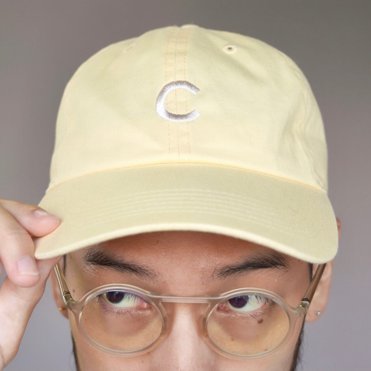 デザインをいろいろと考える中で、Comé Chan!の“C”だけを残してみた結果、とてもシンプルで刺繍の質感が引き立った可愛い帽子ができました。
